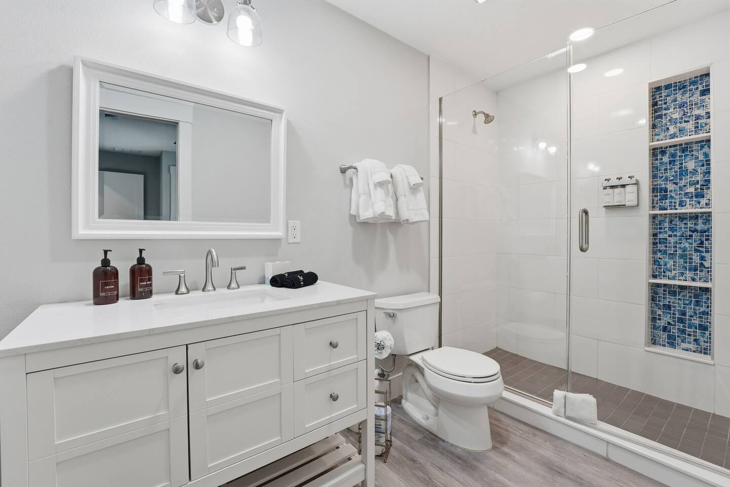 Bright, modern, and spotless. Stocked with full-size toiletries, plush towels, and thoughtful extras for your convenience.