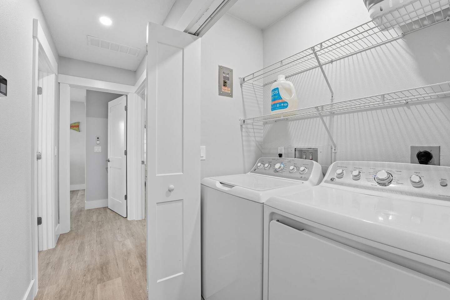 Includes washer, dryer, and detergent. Located on the 2nd floor.